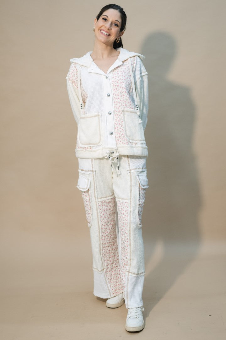 Soft knit and waffle-texture fabric mix