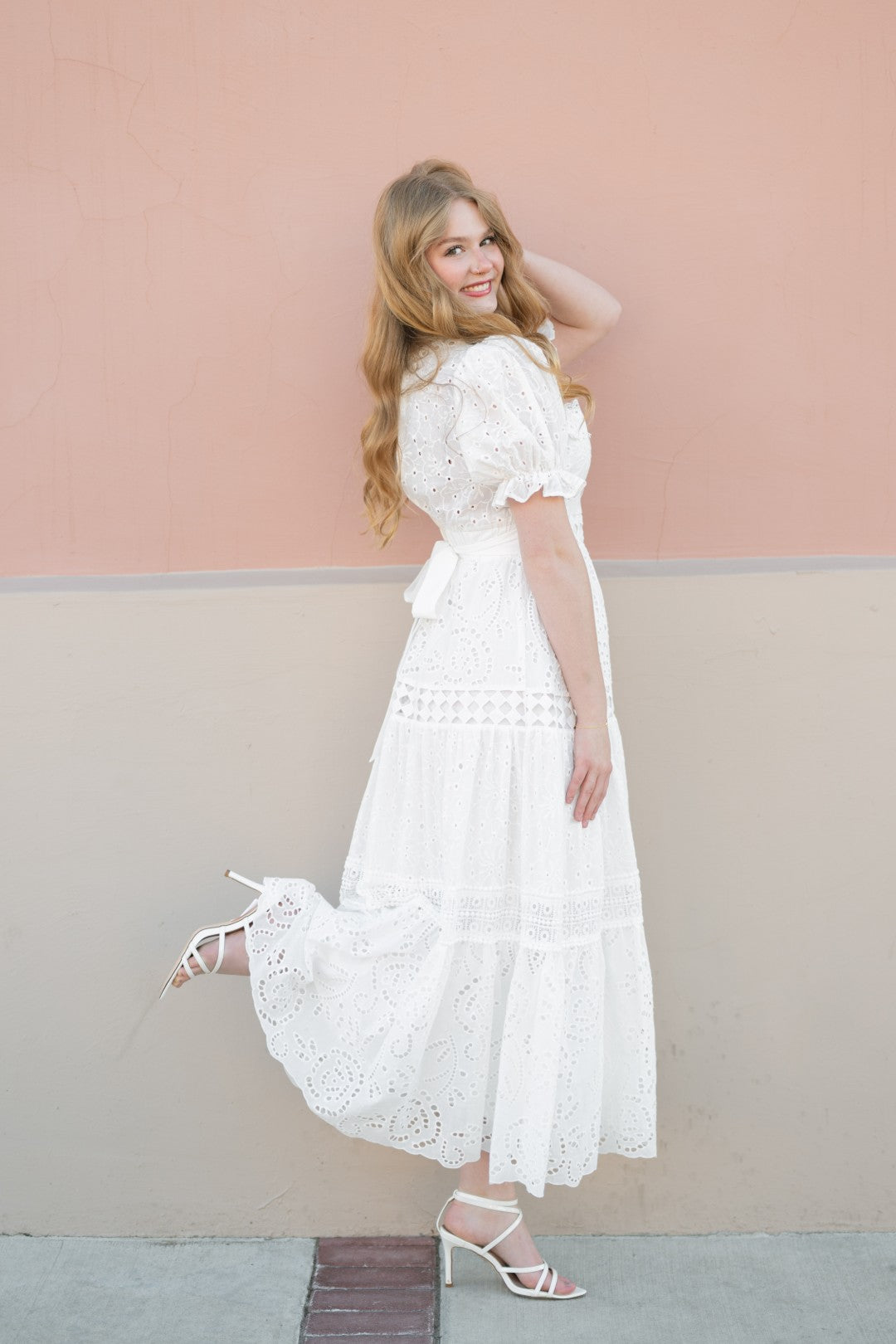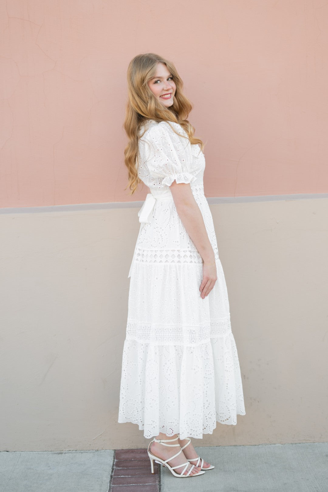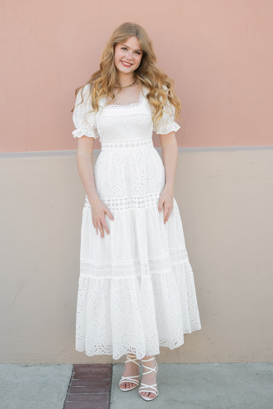 White eyelet embroidered fabric