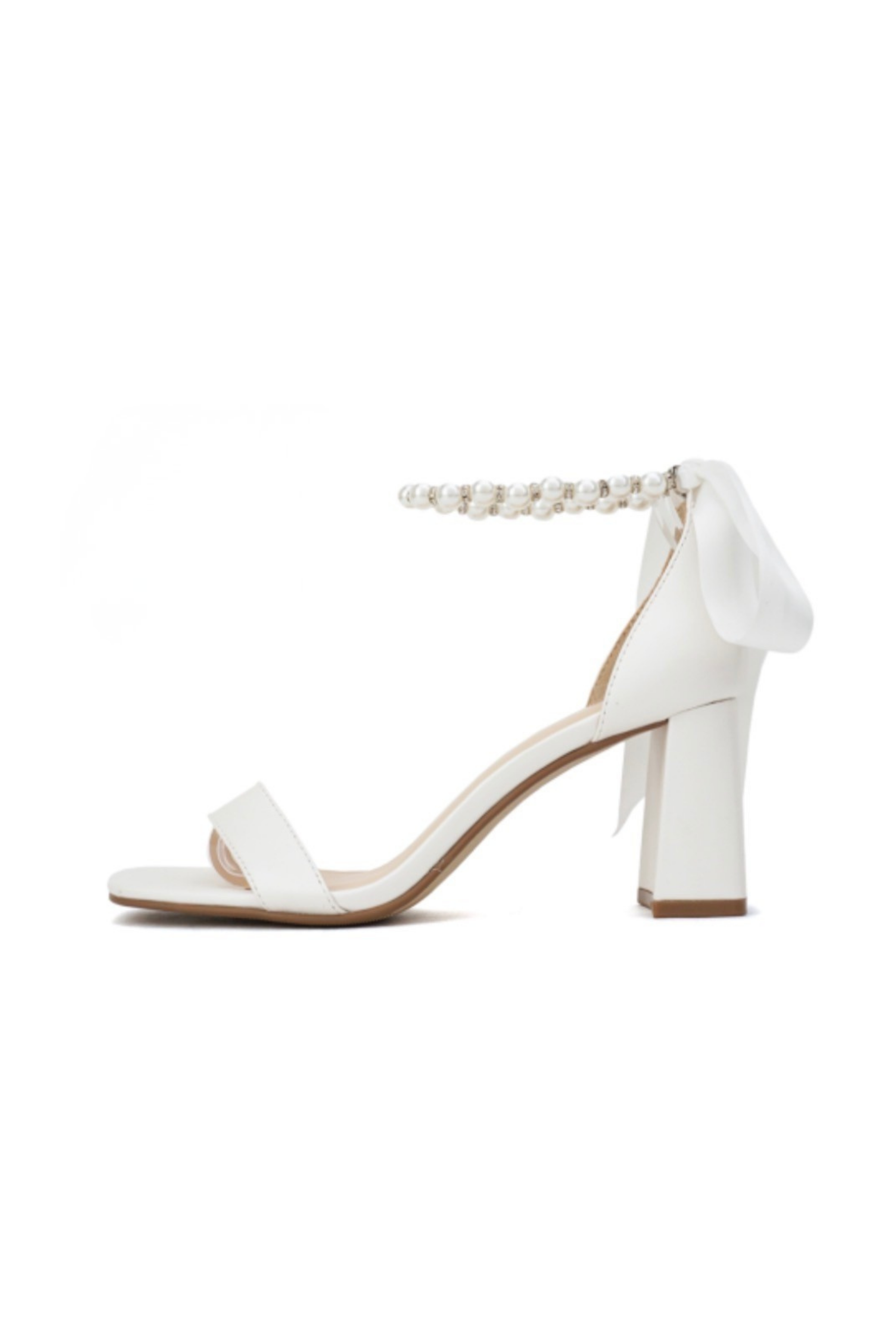 The Belle Pearl Satin Heel in White feels straight out of a modern fairytale. Designed with a delicate pearl ankle strap and an oversized satin bow at the back, this heel blends romantic details with a clean, elegant silhouette. The block heel keeps it comfortable enough for weddings, bridal events, and any moment that calls for something a little extra special.