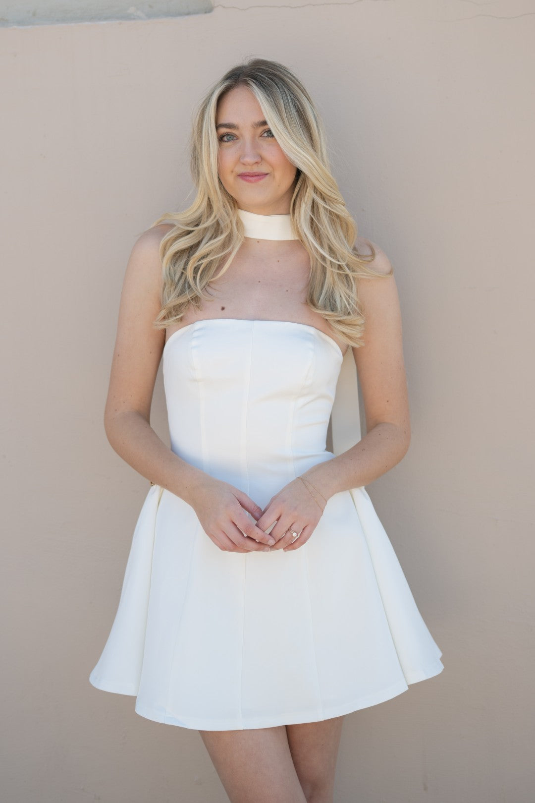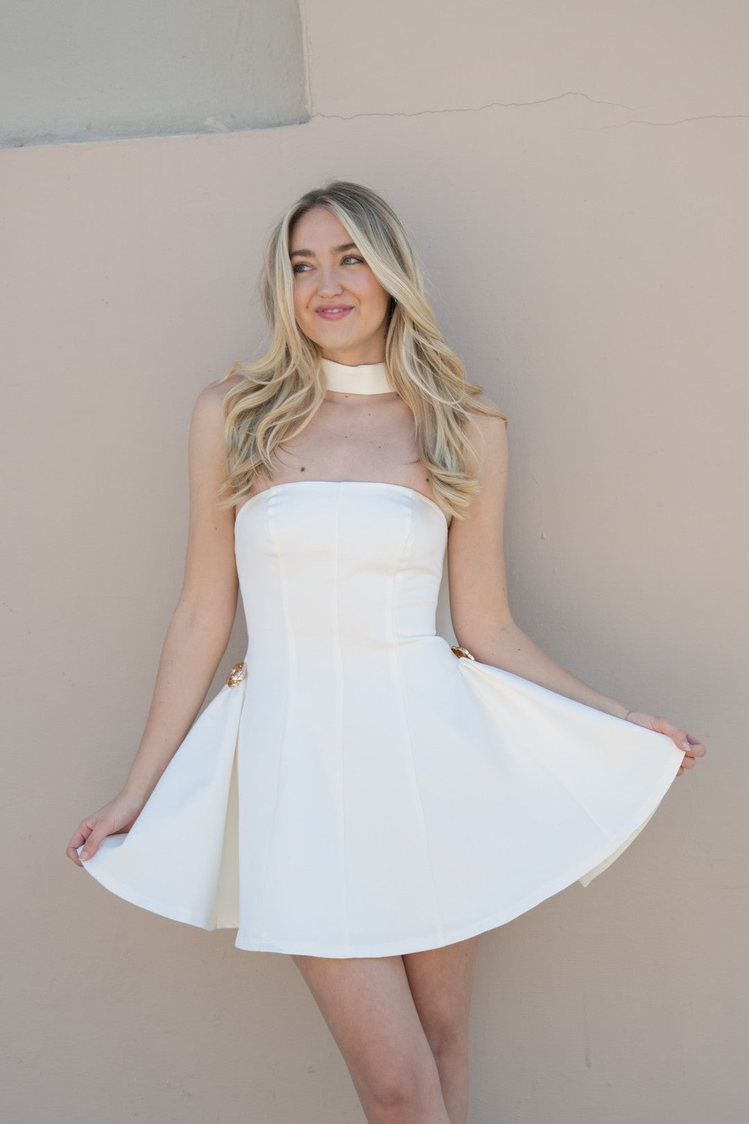 White strapless mini dress