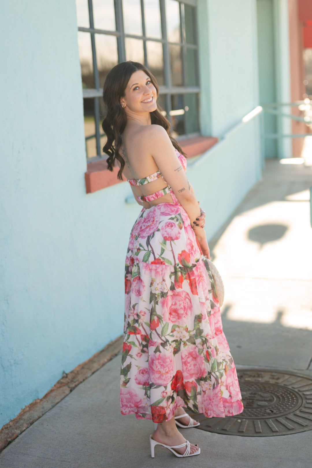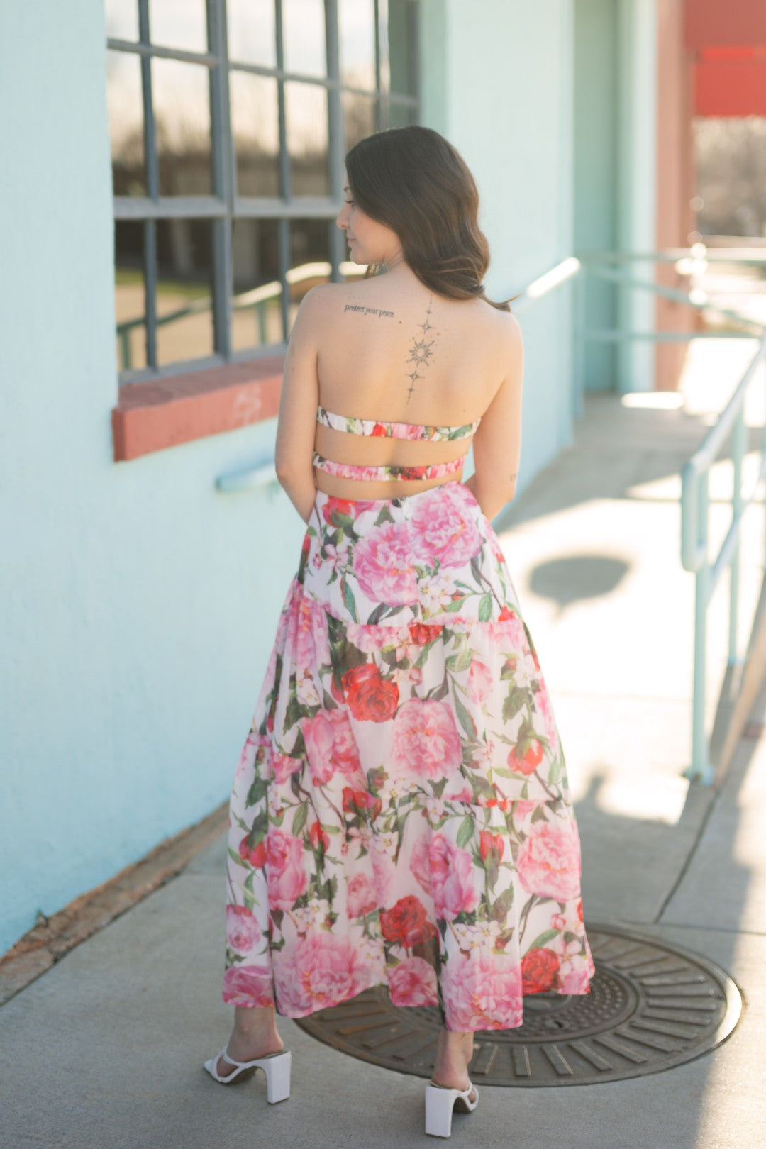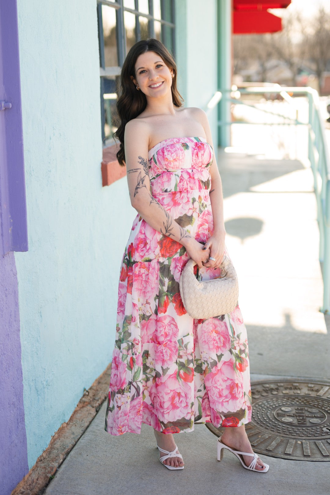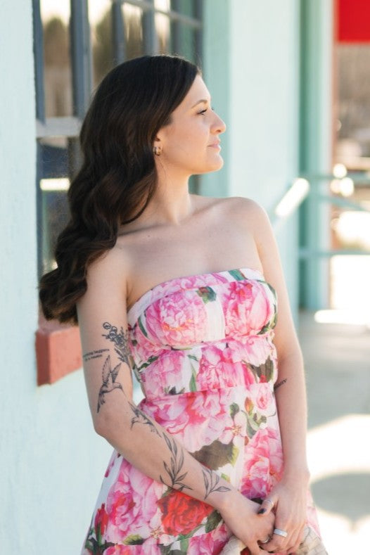 Strapless floral maxi dress