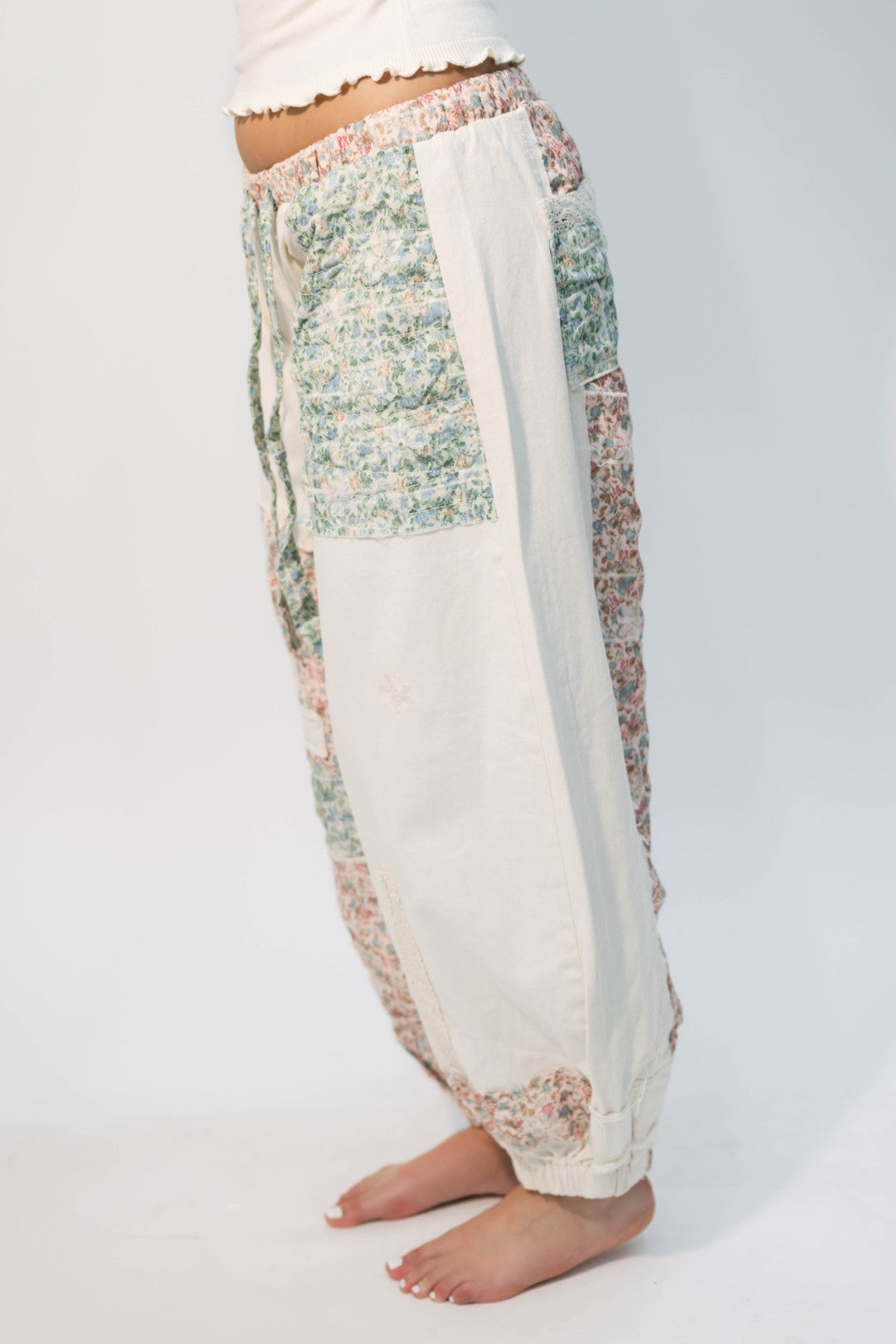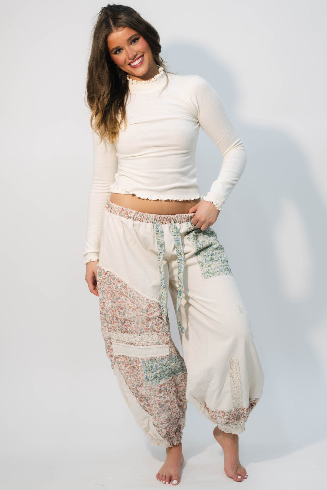 Meet your new favorite cozy statement piece, the Chriselle Floral Patch Jogger Pants are the perfect mix of laid-back comfort and romantic, vintage-inspired charm. Designed with soft quilted floral panels, crochet lace details, and a relaxed fit, these pants give “granny chic” in the best possible way. The lightweight cotton blend keeps them breathable while the elastic waist and cuffs make them effortlessly comfy for everyday wear.