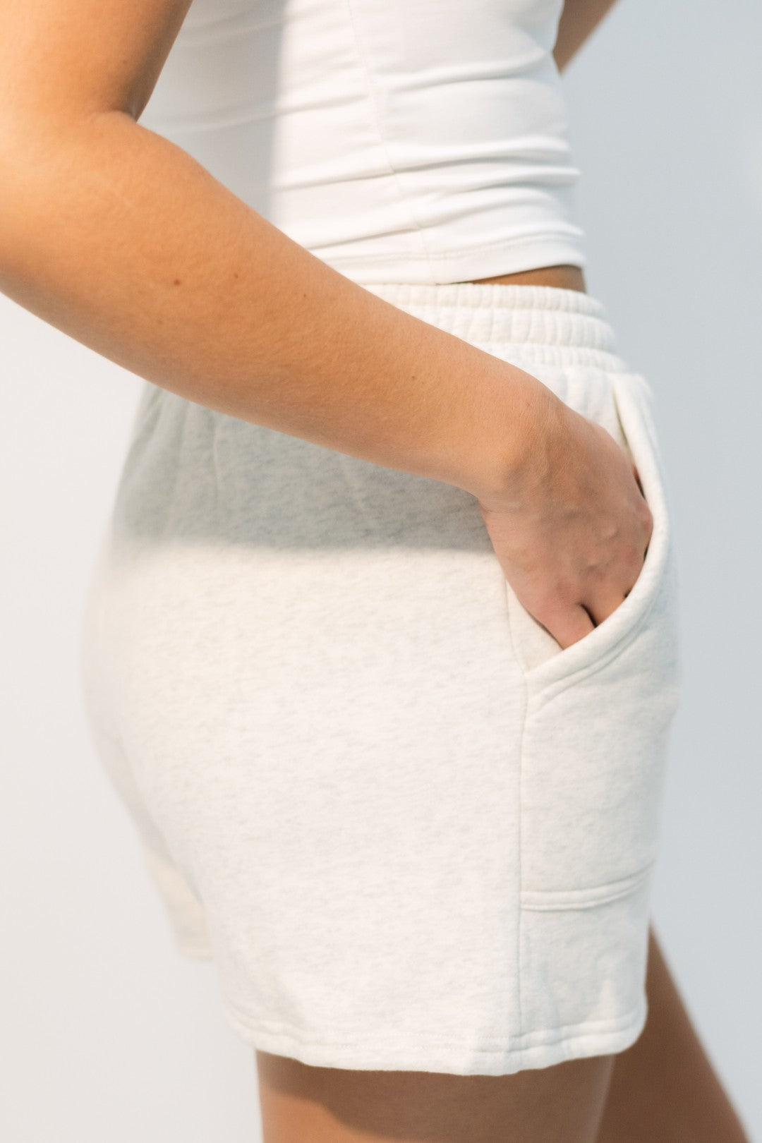 Style your Madi Cream Shorts with an oversized graphic sweatshirt and fuzzy slippers for the ultimate cozy morning look that's perfect for coffee runs or lounging around. Pair them with a fitted tank top and sneakers for cute casual errands, or throw on a cropped hoodie for those relaxed study sessions or movie nights with friends. These versatile shorts work beautifully for everything from pajama parties to casual campus days when comfort is your top priority.