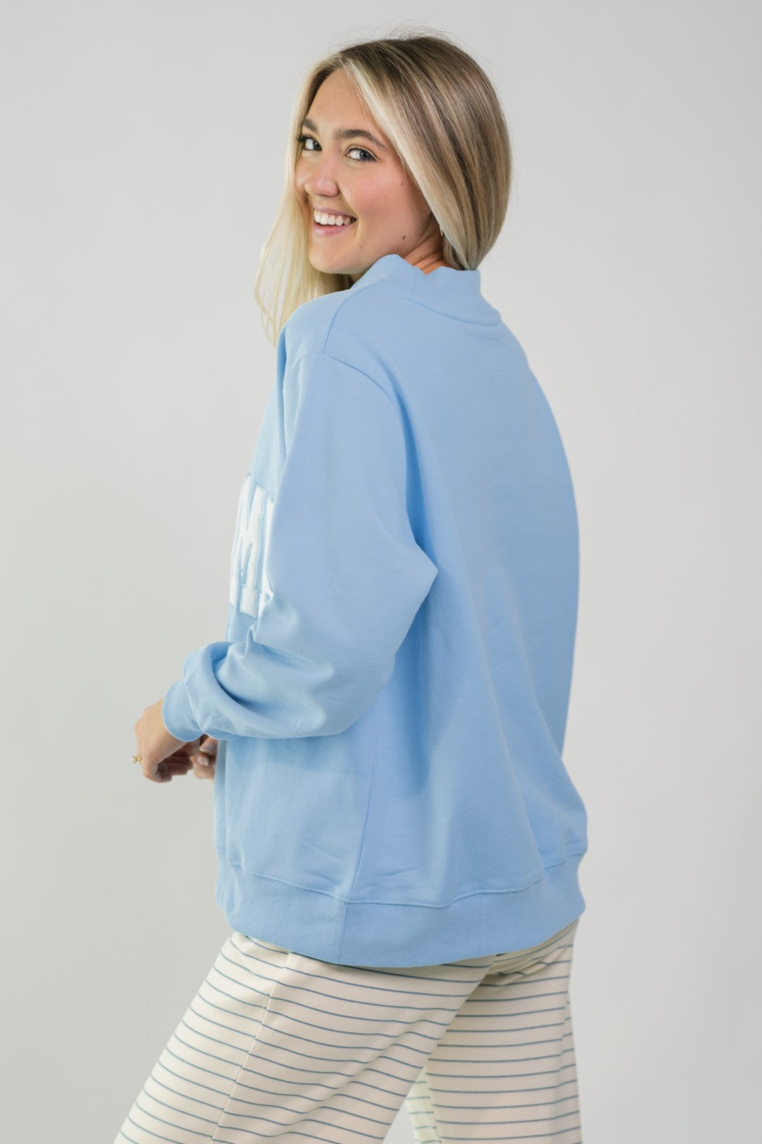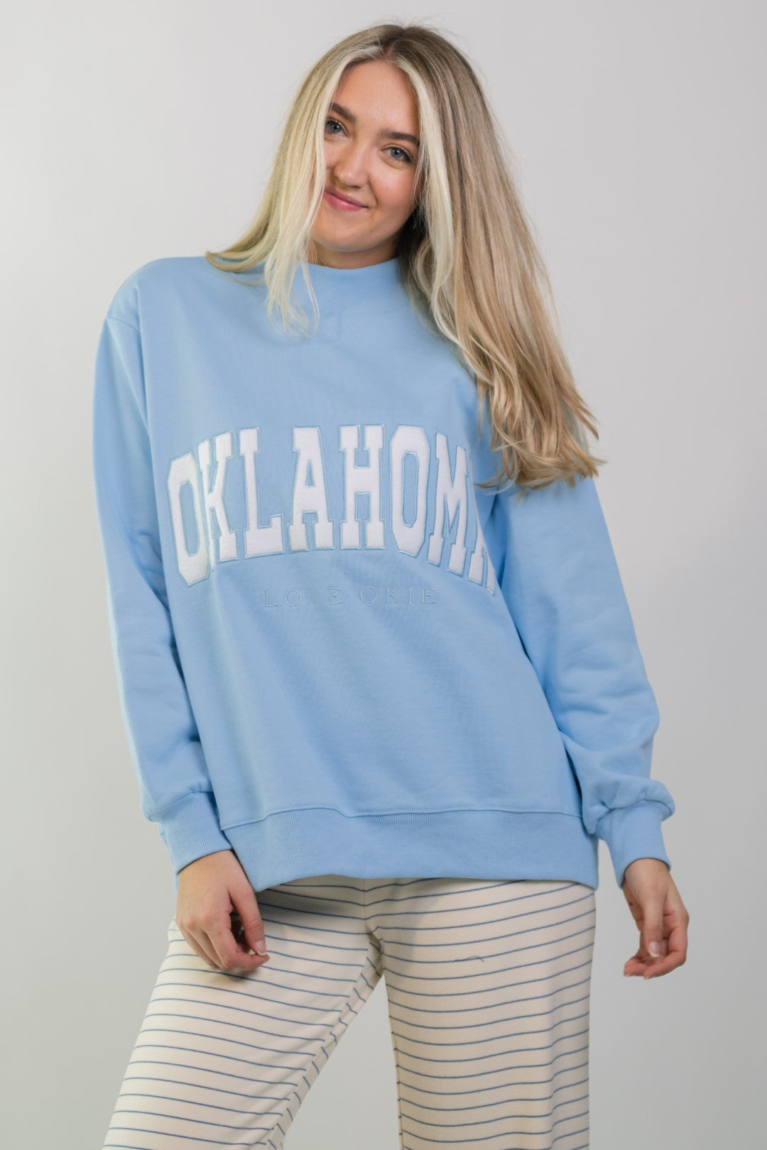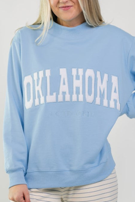 The Oklahoma Mock Neck Sweatshirt – Berry Blue is a cool-toned staple that blends comfort with subtle school spirit. Crafted from 100% cotton and designed with an intentionally oversized fit, this sweatshirt is ideal for errands, travel days, or casual winter layering.