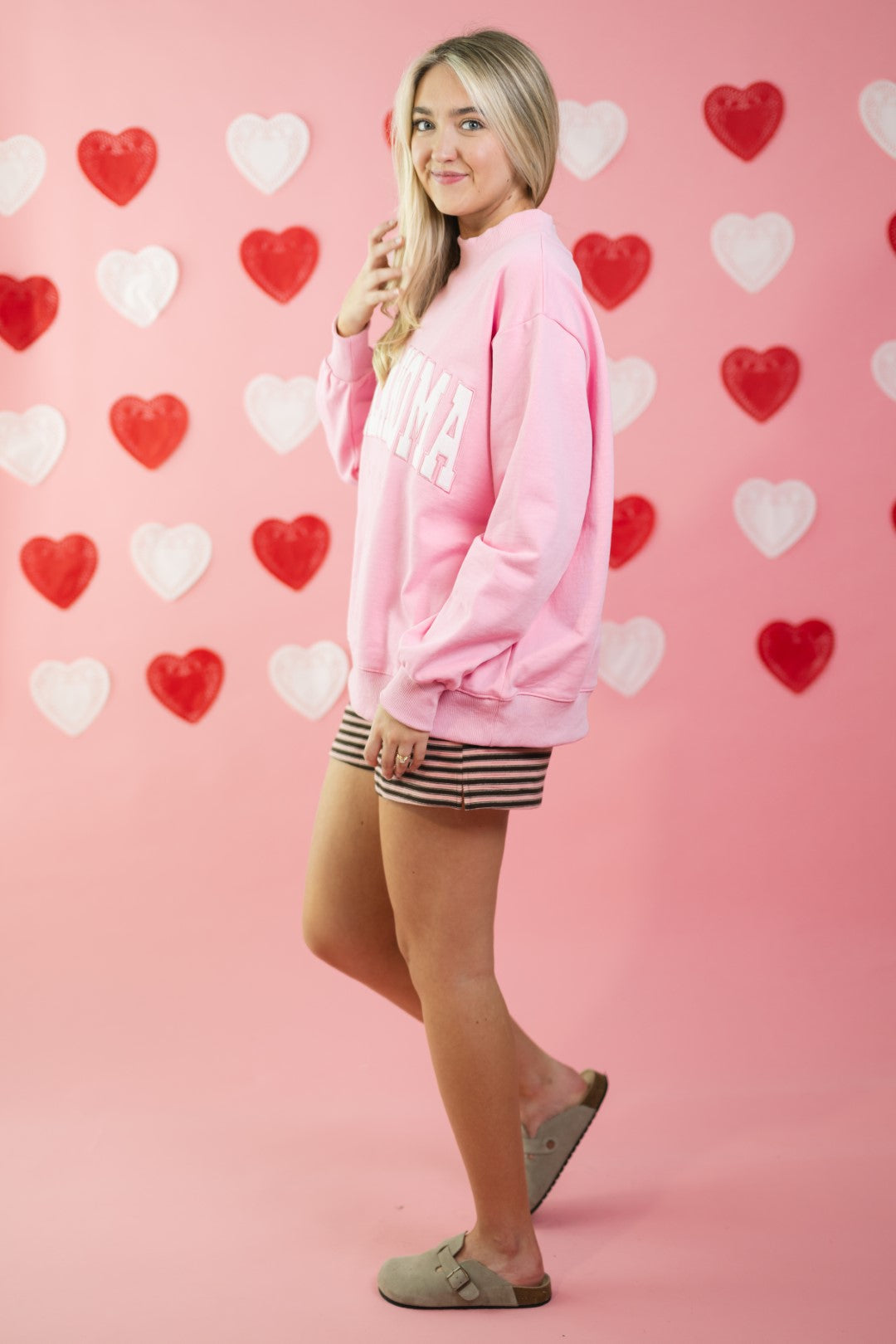 The Pink/Brown Stripe Shorts are an easy, everyday staple with a relaxed fit and a playful color combo that still feels neutral enough to wear on repeat. Designed with a soft elastic waistband and functional pockets, these shorts are made for lounging, errands, or casual weekends styled with a sweatshirt, fitted tank, or lightweight knit.