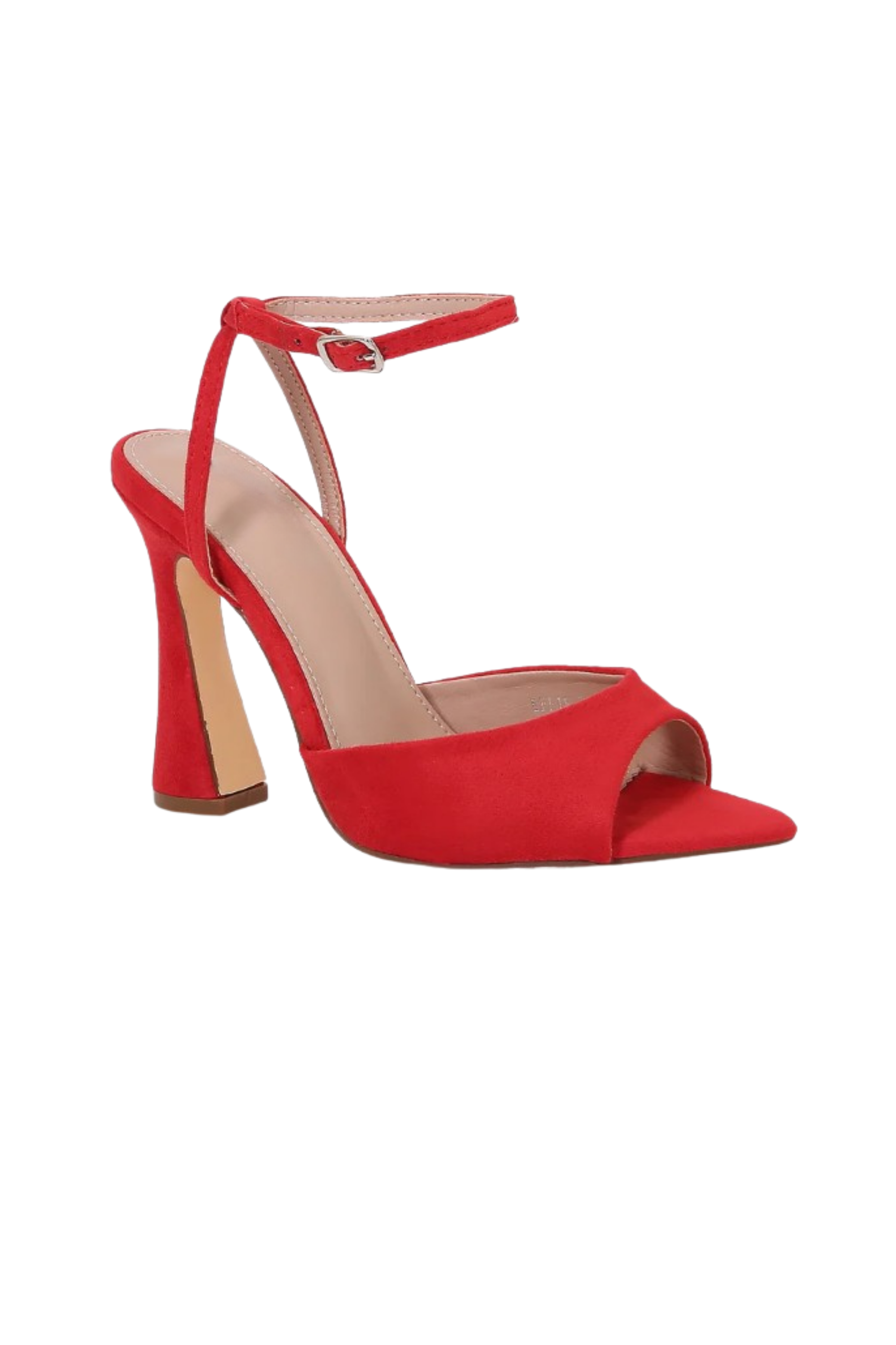 The Effie Suede Red Heel brings a bold pop of color to winter outfits with its soft finish and sculpted flared heel. The clean single strap and ankle buckle create a sleek, minimal silhouette that works for holiday parties, date nights, and any event where you want a standout shoe that still feels polished and easy to style.
