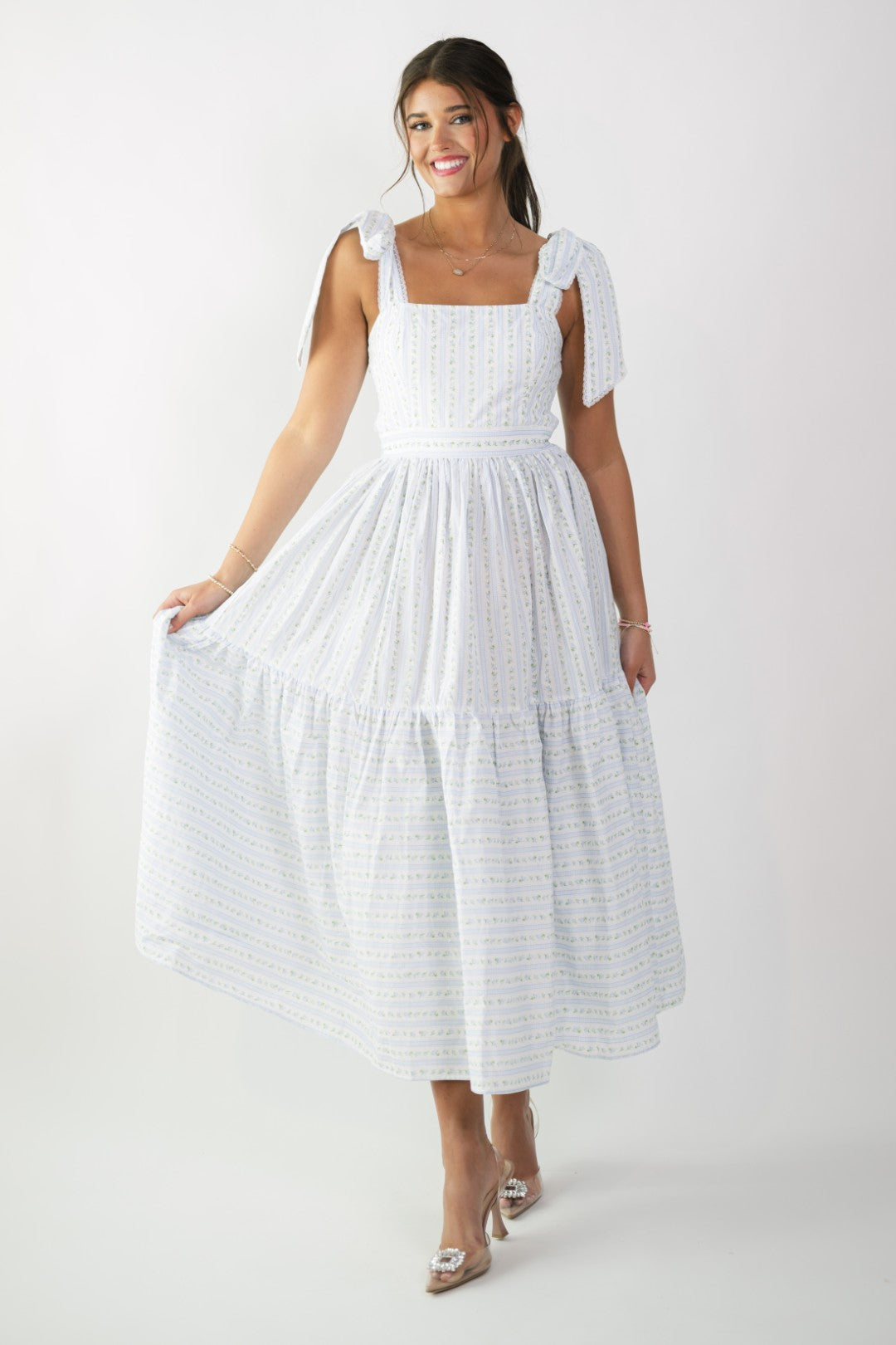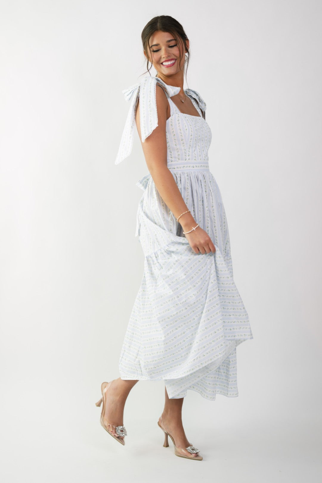 Soft blue floral stripe print