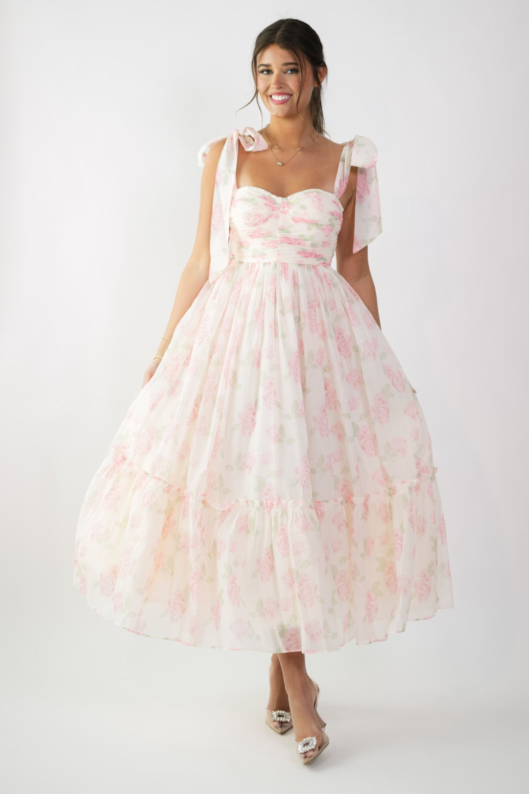 Elevate your look with the Poly Garden Midi Dress in a charming shade of pink. This enchanting dress features a midi length that exudes sophistication and elegance. The soft, flowing fabric drapes gracefully, while the delicate floral print adds a touch of romance and whimsy. With its flattering silhouette, the Poly Garden dress offers a customized fit that flatters any figure. Perfect for garden parties, brunches, or any special occasion, this dress effortlessly combines style and comfort.