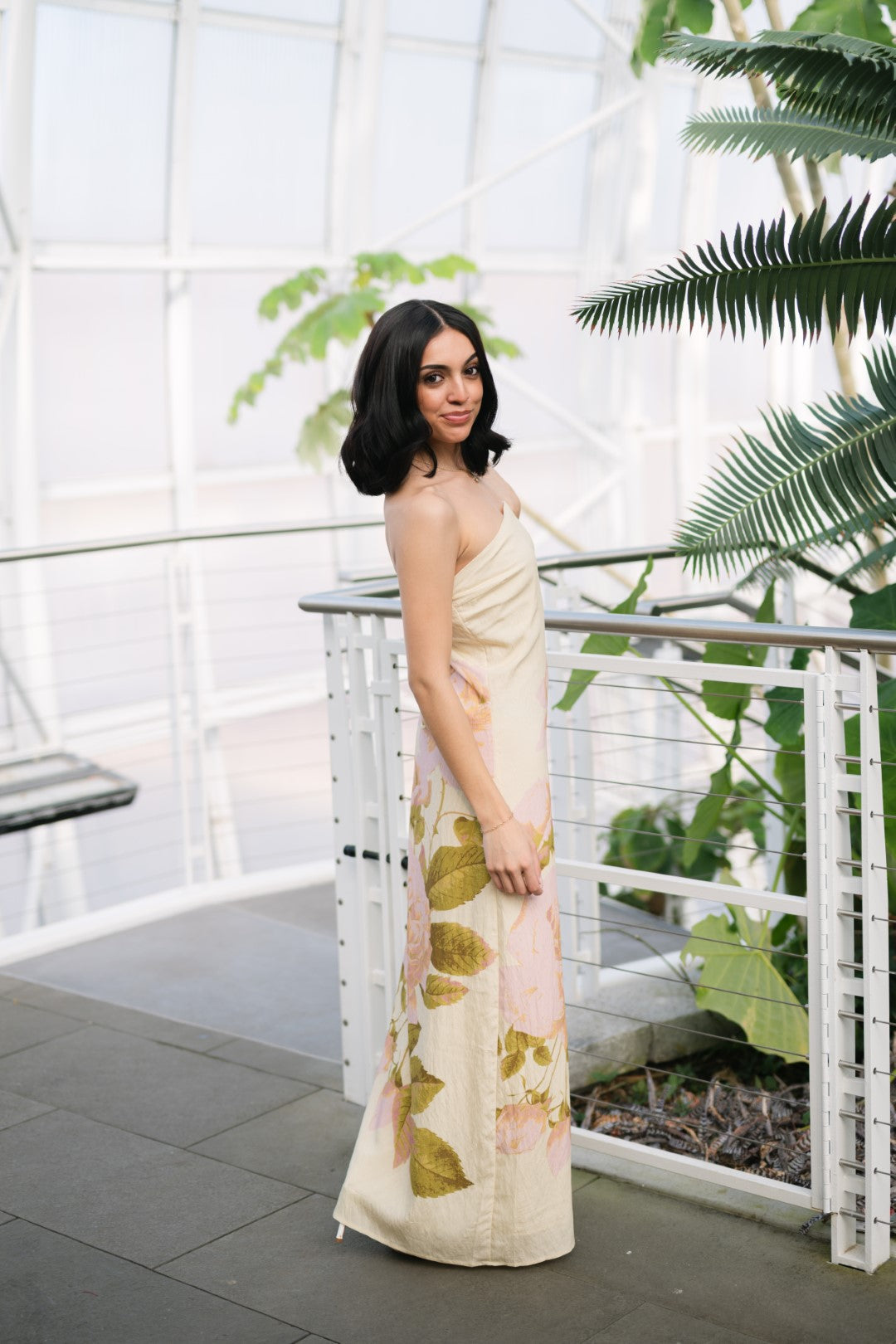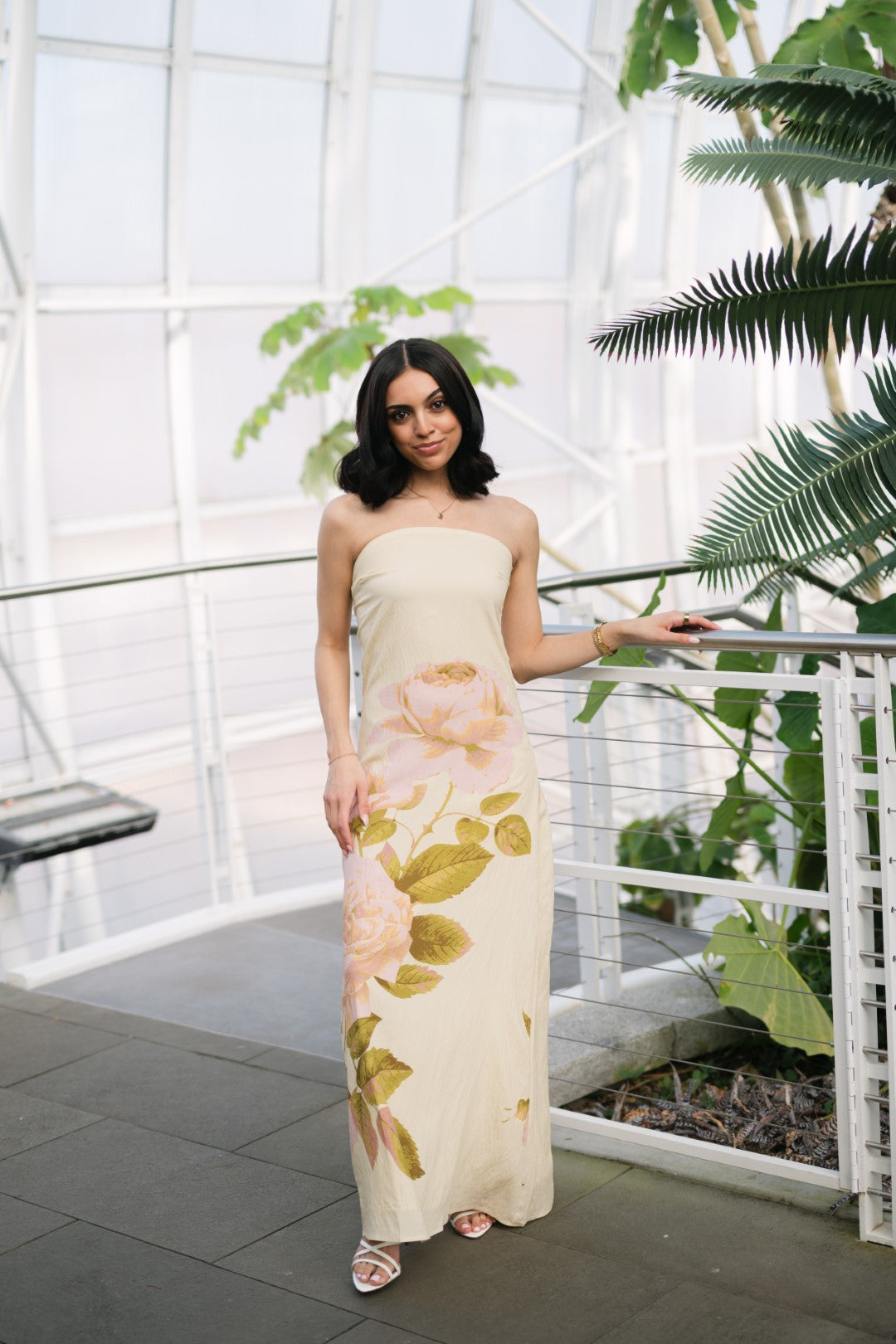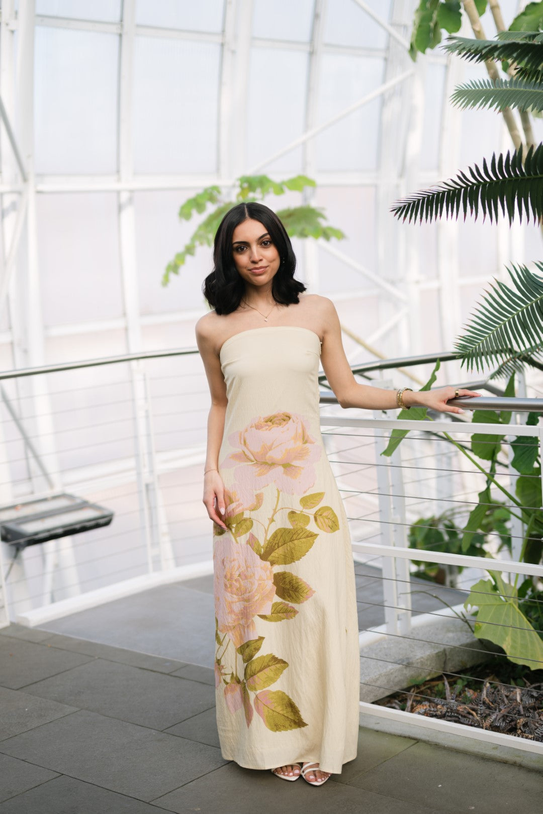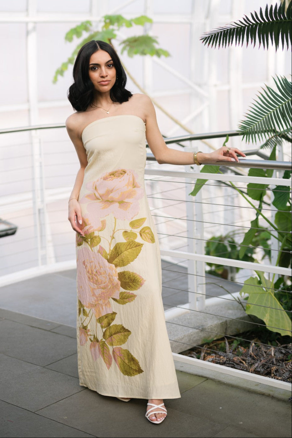 The Lena Strapless Maxi Dress is a strapless maxi dress designed with a clean, streamlined silhouette and a soft floral placement detail along the skirt. The structured bodice offers a secure fit, while the straight maxi length keeps the look minimal and polished. Easy to dress up or down, this style works well for resort vacations, destination dinners, and warm-weather events.